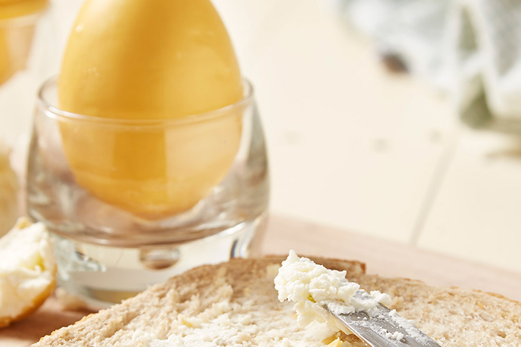 „Eitje“ auf Basis von Butter und Ziegenkäse. Servieren Sie dieses „Eitje“ als Tafelbutter.Zutaten