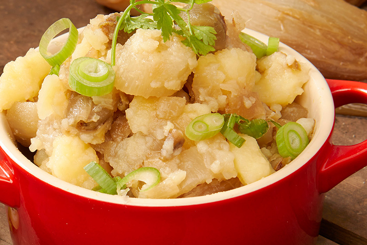 - Den Chicorée unter die Kartoffeln rühren und etwas Butter sowie warme Milch hinzufügen. Mit Salz abschmecken.
