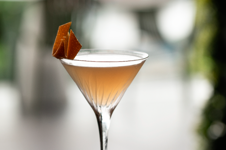 Elegant und kraftvoll: Dieser Brown Derby kombiniert irischen Whiskey mit rosa Grapefruit und Ahornsirup. Serviert im Martiniglas mit Zeste.Zutaten