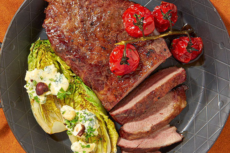 - Then grill it on the barbecue and serve with, for example, grilled sweet lettuce and vine tomatoes.