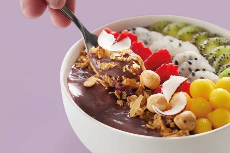 Romige açaï bowl met een frisse topping van fruit, granola en kokos. Heerlijk om samen van te genieten!