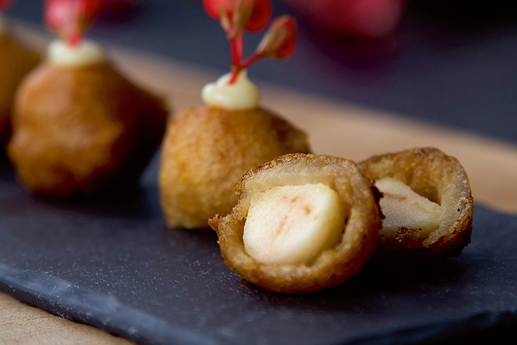 - Haal de appelkaramelbolletjes door het beslag en frituur op 180°C.