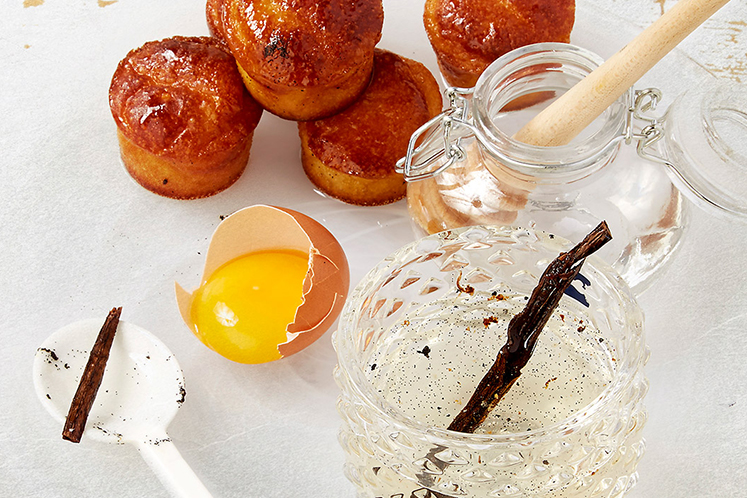 5. Giet de massa in siliconen vormpjes (vul tot maximaal de helft) en laat 2 uur afgedekt rijzen op kamertemperatuur. Bak daarna af op 170°C (circa half uur, als je ze harder wilt hebben, bak daarna op 160°C verder gedurende 20 minuten).