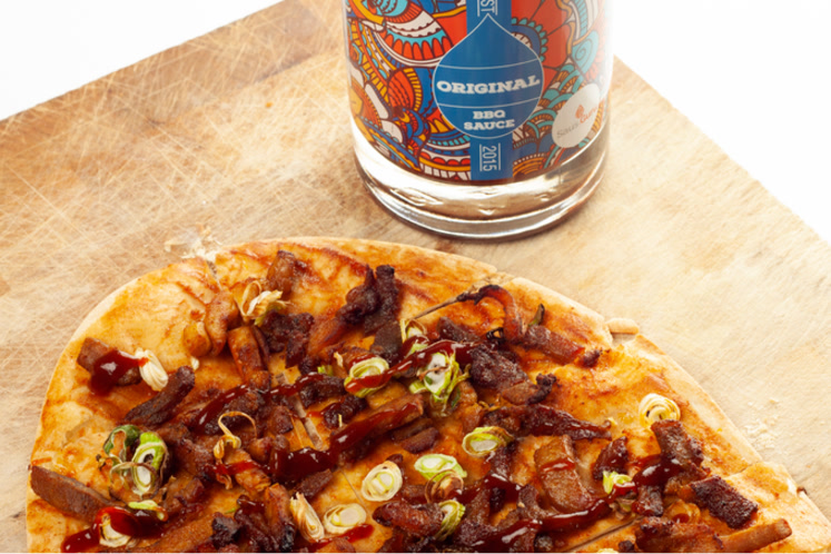 - Smeer de bodem rijkelijk in met de Saus.Guru Original BBQ saus.