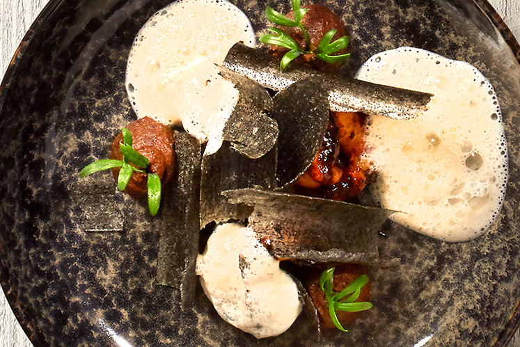 - Meng olijfolie met zeewierpasta tot egaal zwart.