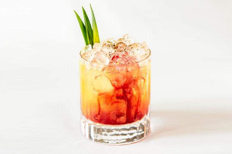 - De ingrediënten snel shaken in een “rocks”-glas, behalve de port.