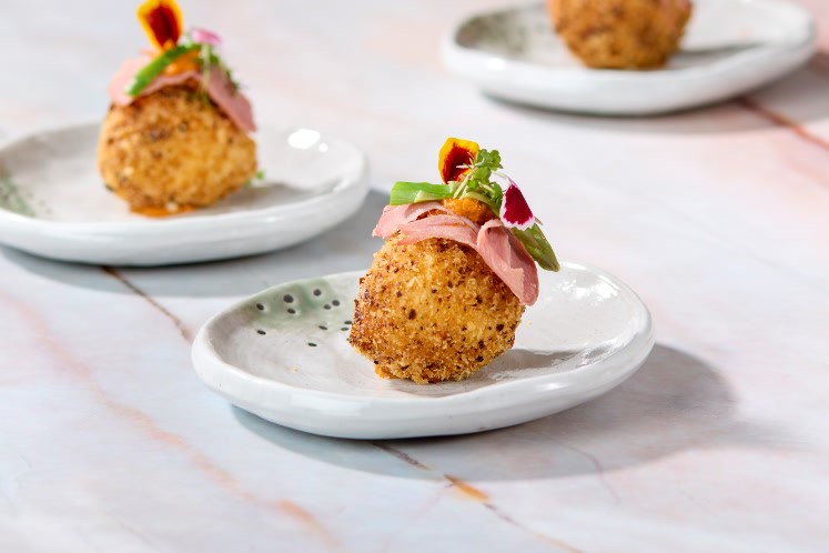 Balletjes met een vulling van buffelricotta, lamsham en Parmezaan.