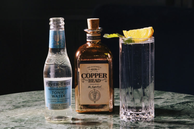 - Combineer 50 ml Copperhead Gin met 150 ml Fever-Tree Mediterranean Tonic Water in een glas gevuld met grote ijsblokjes.