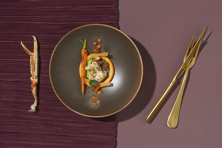 Crémeux van pompoen met langoustine en gebrande mosterd