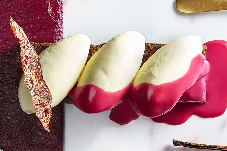 De basis van donkere chocolade zorgt voor een solide smaakbasis, terwijl het roomijs en de chocoladesaus voor luchtigheid zorgen en een fruitig zure toets toevoegen.