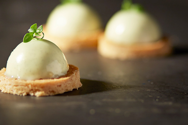 - Gebruik de massa op 35°C. Giet dit over goed ingevroren dessertcreaties.