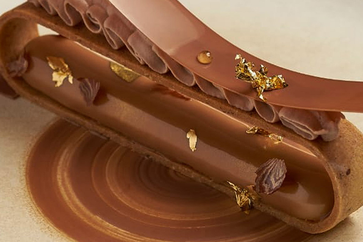 - Kook een crème anglaise met de melk, suiker, dooiers, praliné en pasta.