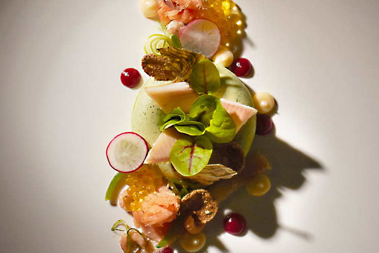 - Serveer met gerookte vis, zoals warm gerookte zalm, paling en forel. Werk af met zoetzuurtjes en bietencoulis, krokantje van zuurdesembrood, chips van kombublad (droog deze op 100°C tot crispy) en een mayonaise van zeekraal.