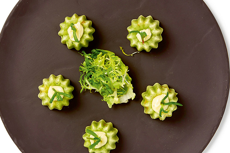 - Zeef de bloem samen met de baking soda. Mix dit in de keukenmachine met de eieren, karnemelk, zeekraal en peterselie tot beslag.
