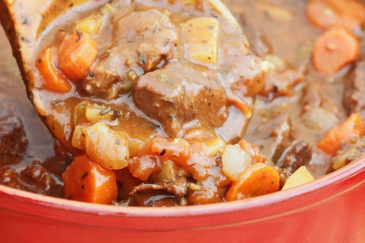 - Draai het vuur laag en stoof het vlees zachtjes gaar in circa 2-3 uur.