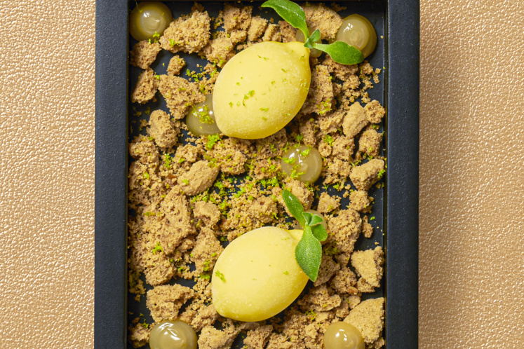 - Breek de citroen koekjes en leg wat stukjes op een bord.