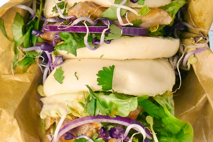 Aziatisch gestoomd broodje met kippendij, suikersla en koriander.Benodigdheden