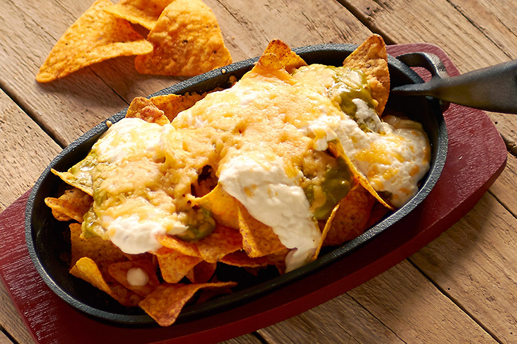 Klassieke nachochips met gesmolten kaas.Benodigdheden