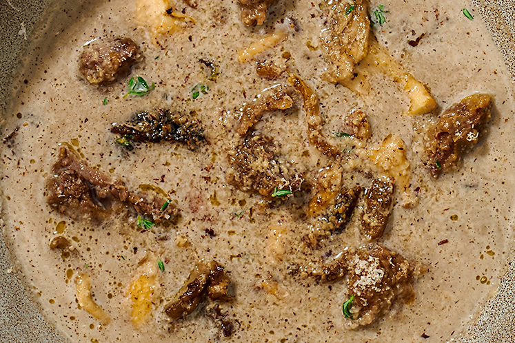 Najaarssoep met wildstoof en paddenstoelen