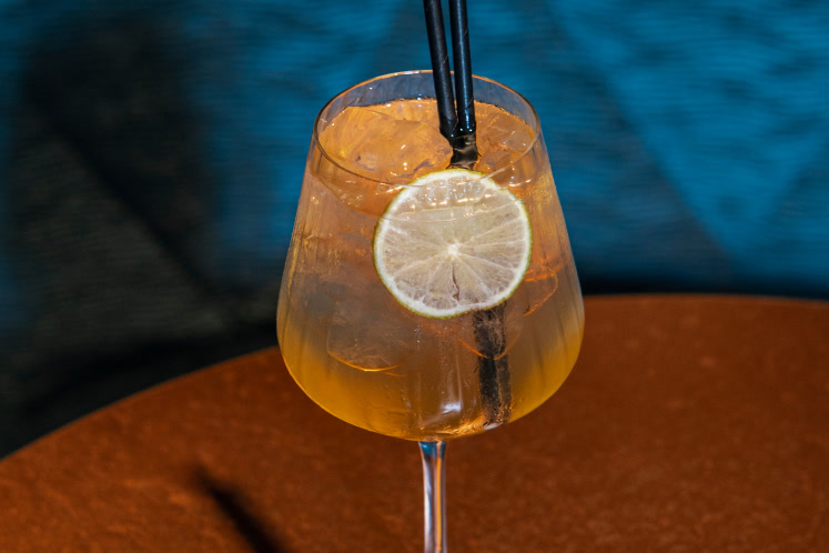 - Voeg een limoenschijfje toe en roer zachtjes door.