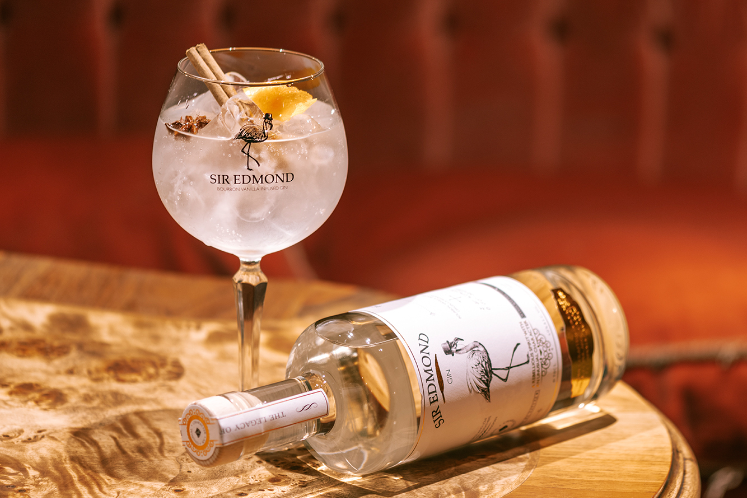 - Vul een glas met veel ijs en schenk de Sir Edmond Gin erin.