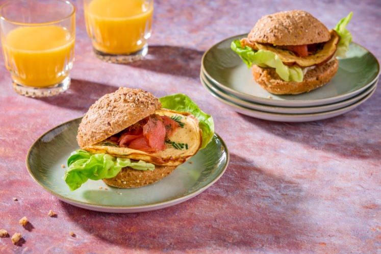- Beleg het broodje vervolgens naar smaak met kropsla, frittata en tenslotte een paar plakjes gravad lax.