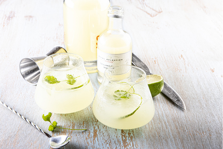 Cocktail op basis van limoncello, sprite, gin en citroenazijn. De ingredienten zijn voor twee glazen.Benodigdheden