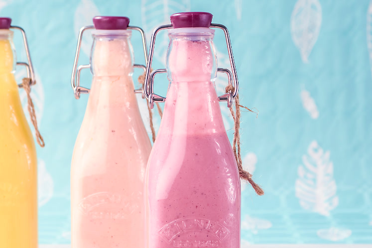 1. Plaats alle ingrediënten in een blender en draai glad. Is de smoothie te dik, voeg dan wat fruitsap toe.