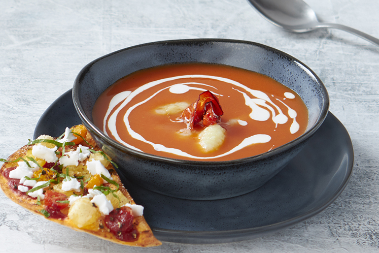 Soep van geroosterde paprika met tomatentoast