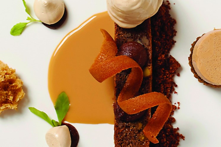 Een dessert waarbij verschillende techniek en structuren zijn gebruikt op basis van koffie.Benodigdheden