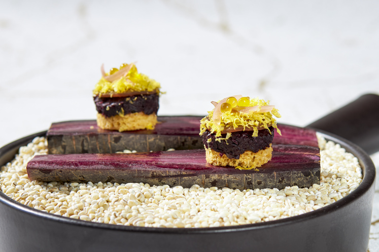 Tartaar van paarse wortel met gepekelde eidooier