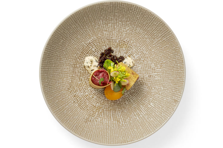 - Vul de aardappelcilinders met tartaar van reebok en leg op het bord. Leg de eidooier erbij. Schep er een beetje truffelmayonaise naast en als laatste een schepje gepofte black quinoa en een takje mosterdbloem.
