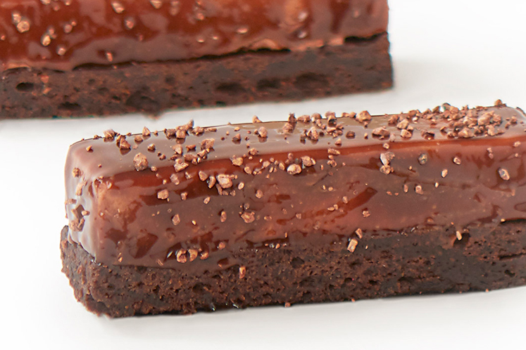 Deze Tonka chocolade bar van mousse en brownie is een decadente traktatie die smeltende chocolade en fluweelzachte mousse combineert.Opvallend fijne patisserie. Pastry by Lynn.