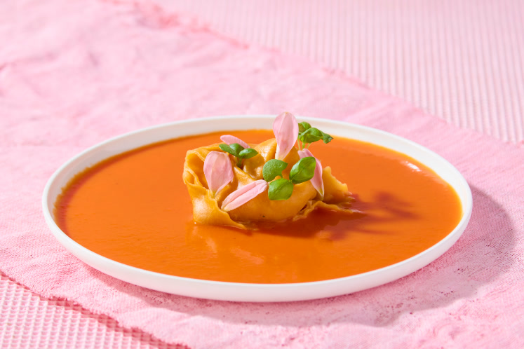 Tortellone gevuld met paprika en ricotta, geserveerd in een rijke piperade saus. Een heerlijke symfonie van smaken en kleuren.Benodigdheden