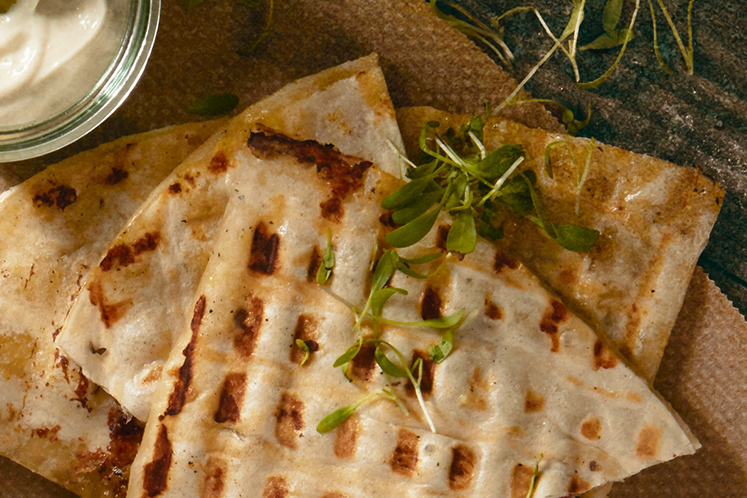 - Leg daar stukjes jong belegen kaas op. Rasp er komijn-anijs spices overheen.